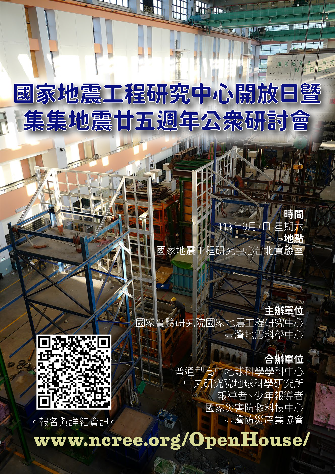 2、一般民眾:請至國家地震工程研究中心開放日官網 (https://www.ncree.org/OpenHouse/)報名。