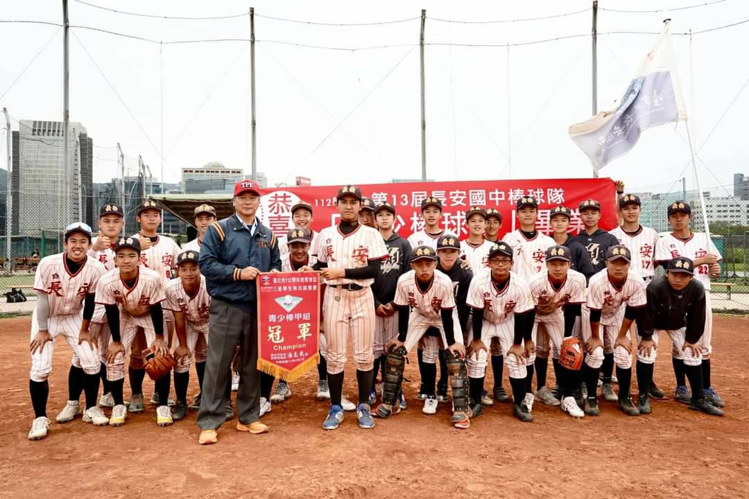 恭喜長安國中棒球隊榮獲112學年度臺北市教育盃三級學生棒球錦標賽國中硬式組冠軍 另外,906班陳澤軒同學榮獲投手獎,906班馬佑嘉同學榮獲全壘打獎,陳思惟教練榮獲教練獎。